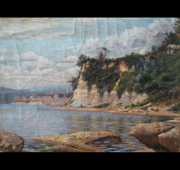 "I presented William diMarco with a treasured oleograph that was badly torn with a soiled surface. He invisibly repaired the tears, reinforced the object from behind, and cleaned the surface back to its original brilliance. There is no alteration of the image with inpainting or other forms of intrusive restoration. The final product is clear, with the images unretouhced, and the tears invisible. It now hangs over my library fireplace."